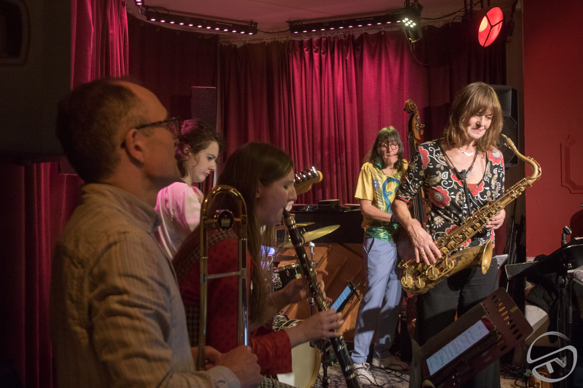 Doro Offermann: saxophone Maria Rothfuchs: bass Danica Hobden: guitar Annette Kayser: drums Samantha Wright: clarinet Catharina Boutari: vocals Rainer Sell: trombone |